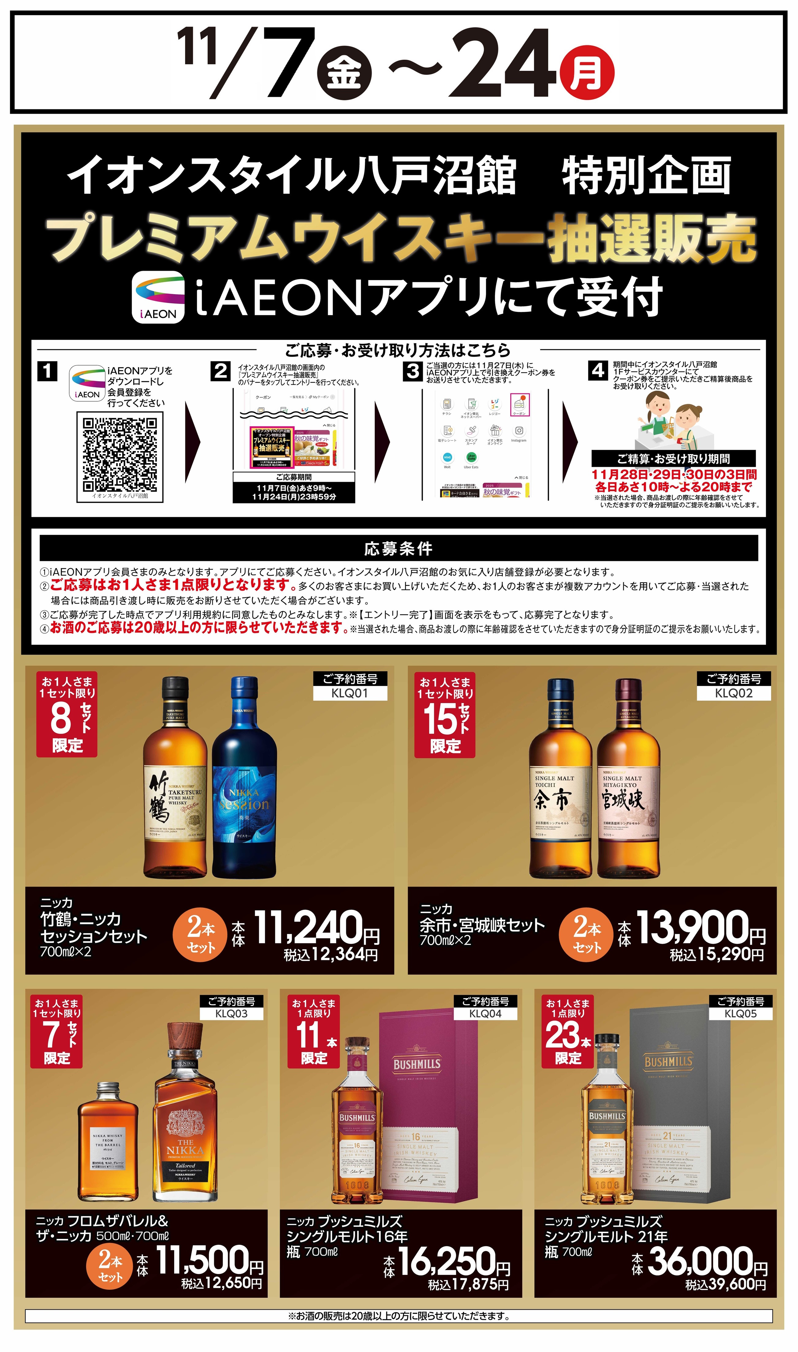 イオンスタイル八戸沼館 プレミアムウイスキー抽選販売