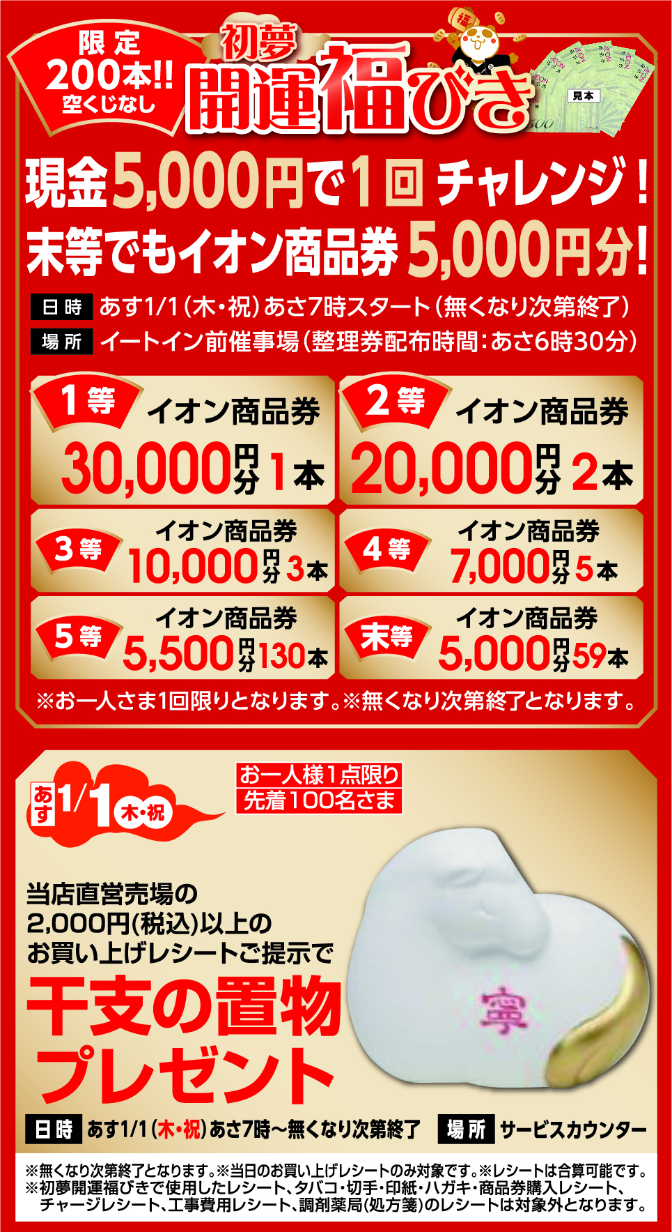 イオンスーパーセンター盛岡渋民店 初売りイベント情報