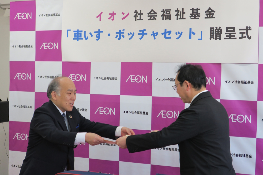 イオン社会福祉基金 「社会福祉法人 つばさ福祉会」へ車いすとボッチャセットを贈呈