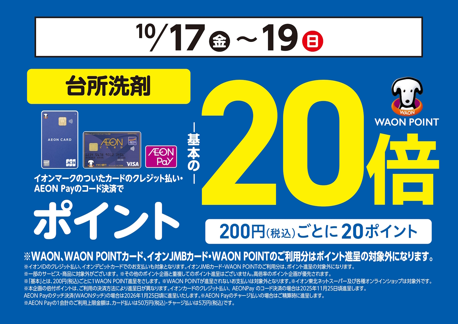 ※イオンJMBカード・WAON POINTのご利用分はポイント進呈の対象外となります。