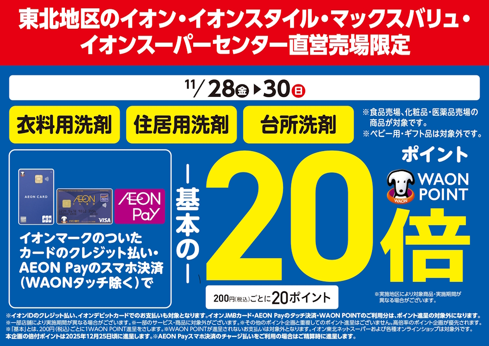 ※イオン東北ネットスーパー及び各種オンラインショップは対象外です。