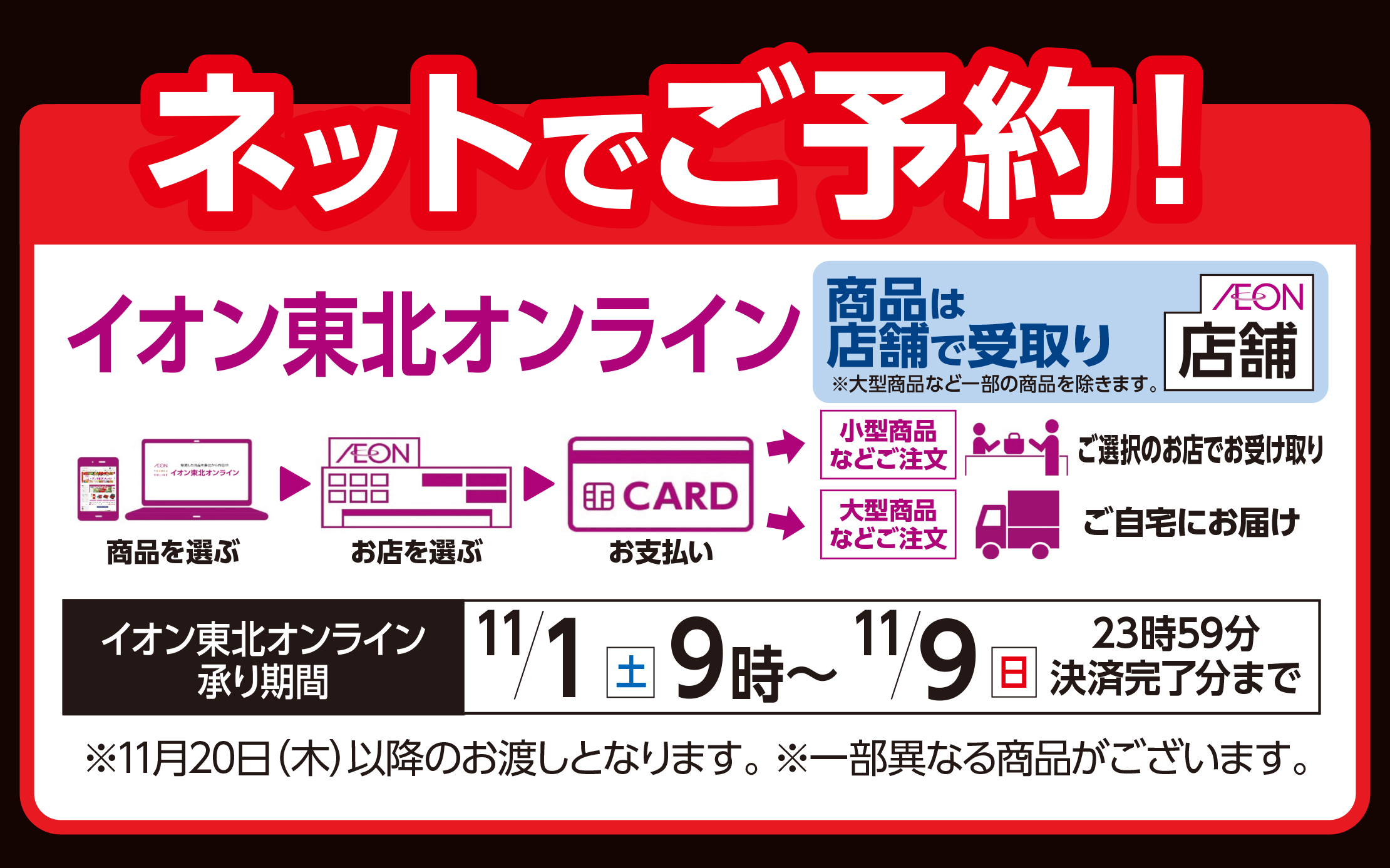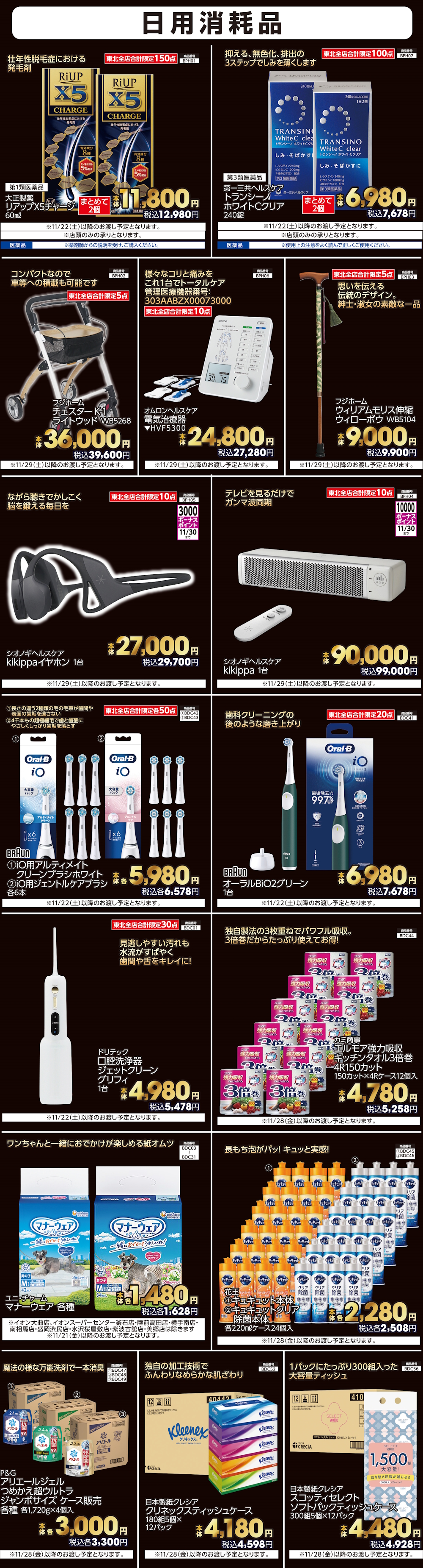 TOP ■家電 ■暮らしの品 ■日用消耗品 ■服飾雑貨・小判 ■衣料品 ■食品・お酒 ■マックスバリュ店舗、イオンスタイル茨島・広面・矢巾・八戸城下・本荘で承り可能な商品 ▲TOPへ ▲TOPへ ▲TOPへ ▲TOPへ ▲TOPへ ▲TOPへ ▲TOPへ