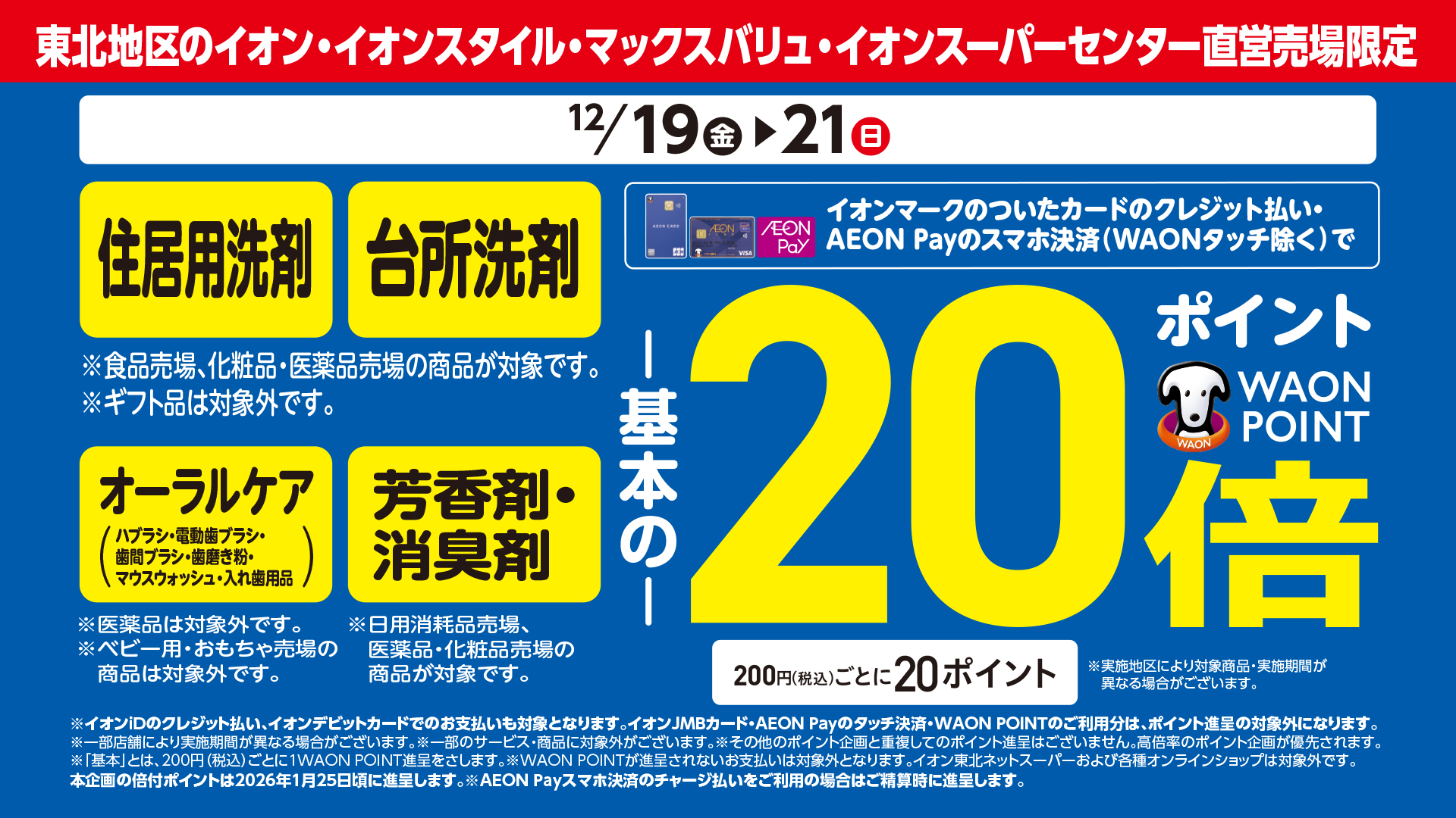 ※イオン東北ネットスーパー及び各種オンラインショップは対象外です。