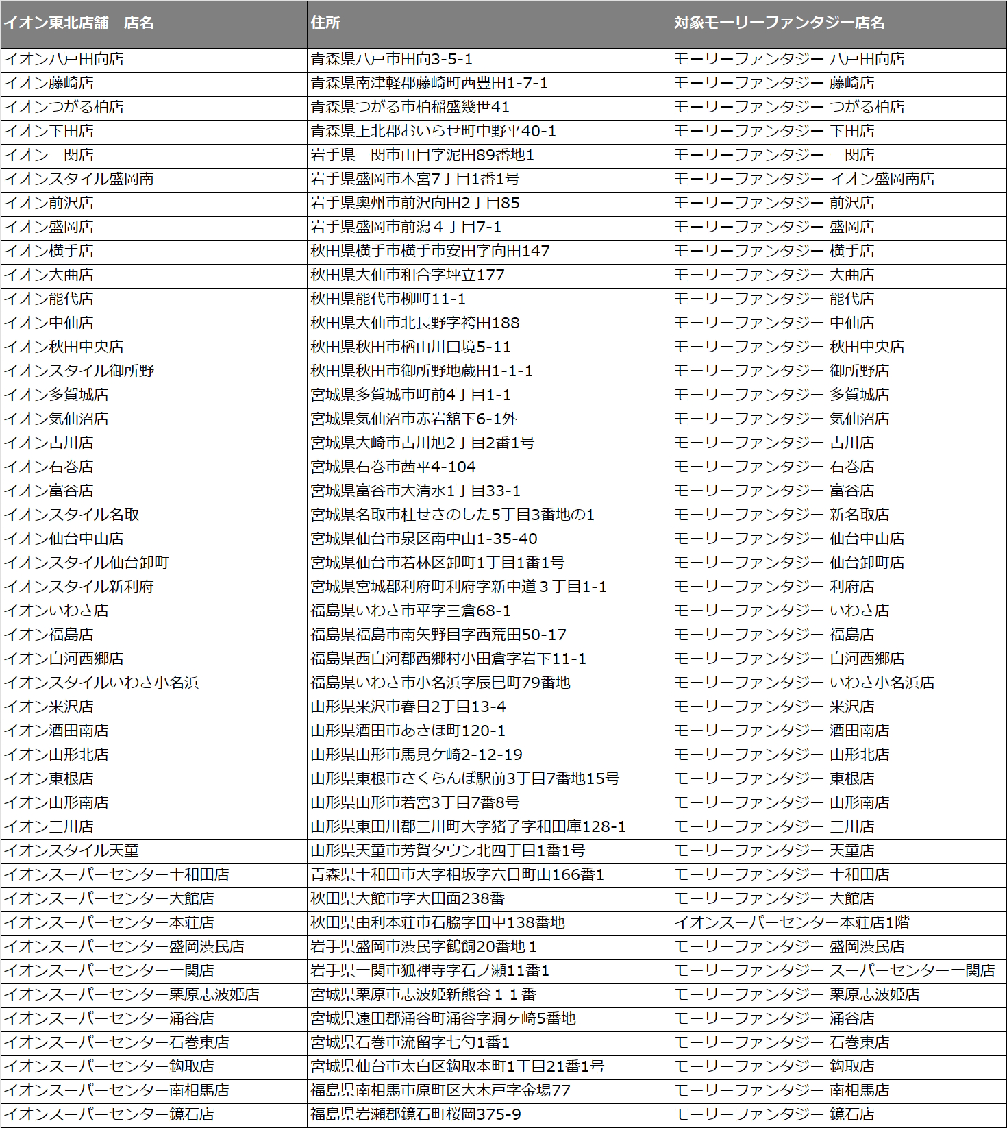 期間中に、モーリーファンタジーが入店しているイオン東北店舗の直営売場で5,000円以上(税込)お買い上げのiAEON会員さまに、後日モーリーファンタジーのメダル50枚と引き換えできるクーポンをプレゼント条件