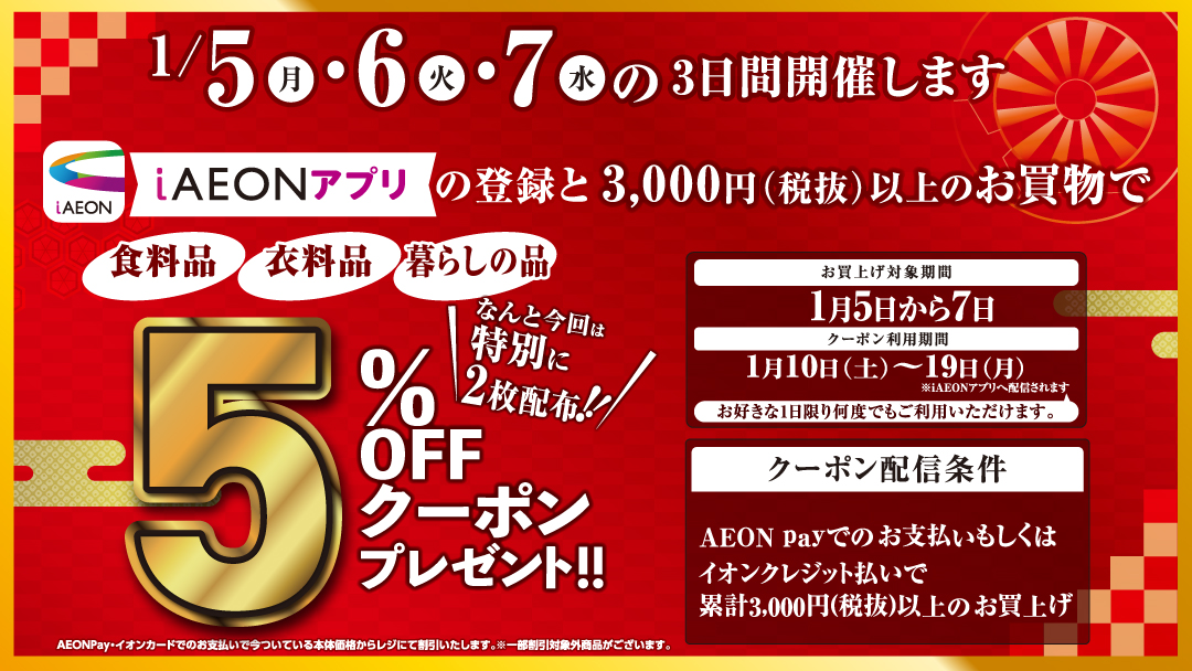後日、iAEONアプリ上でクーポンを配信いたします。