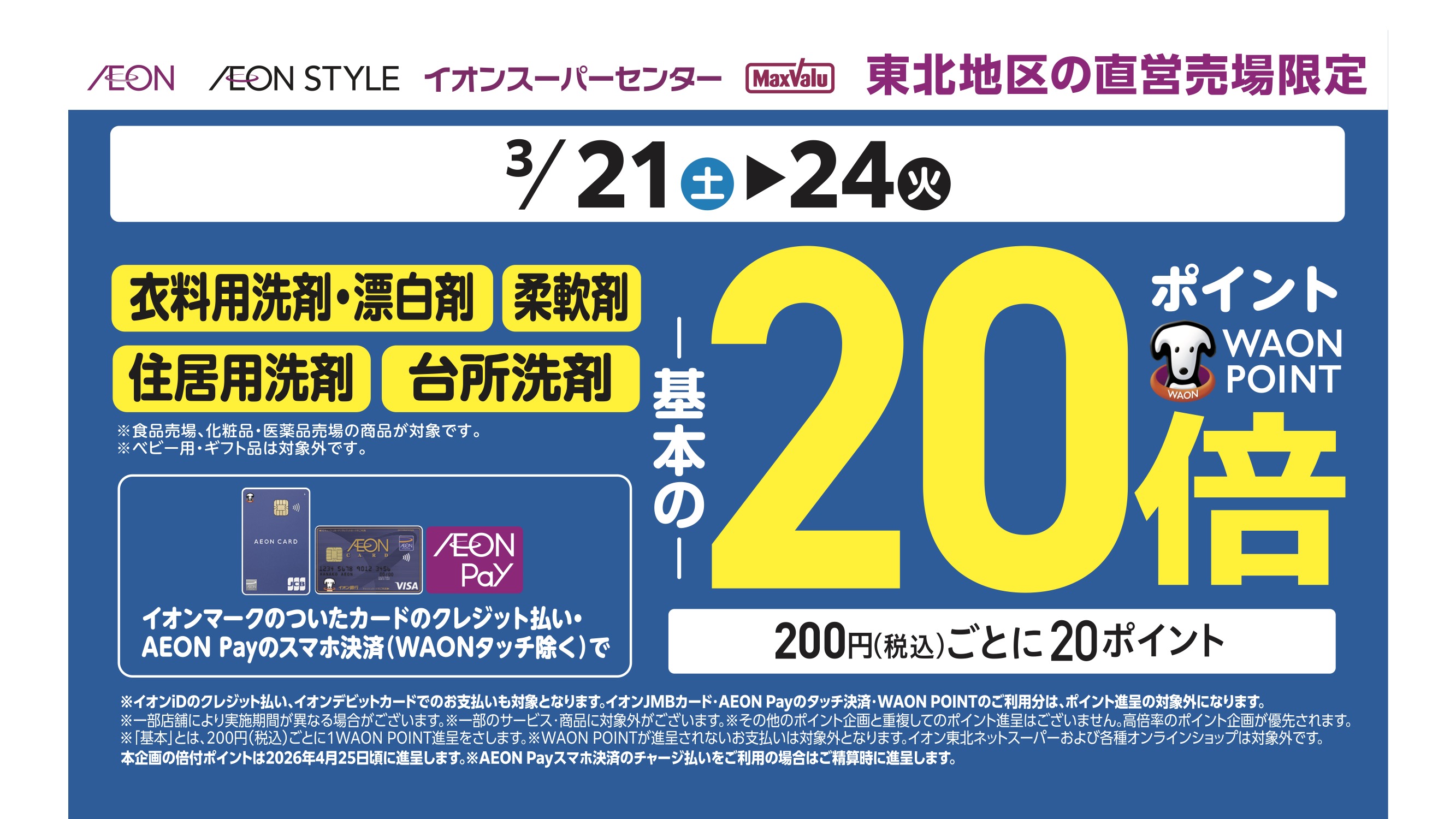 ※イオン東北ネットスーパー及び各種オンラインショップは対象外です。