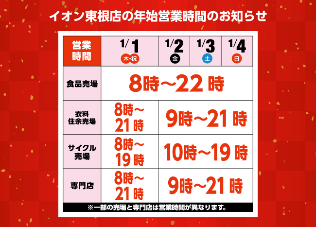 ※一部の売場および専門店は営業時間が異なります。
