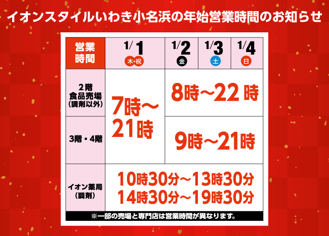 | WAONステーション | 8:00〜22:00 | 8:00〜22:00 | 8:00〜22:00 |