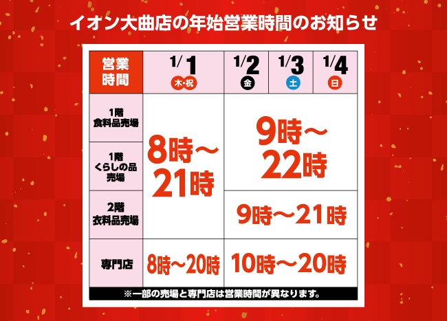 | JA秋田おばこ | 9:00〜21:00 | 9:00〜19:00 | 9:00〜19:00 |