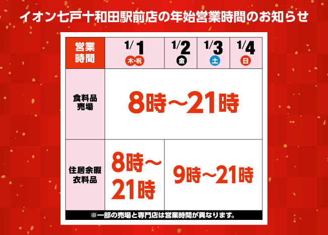 | WAONステーション | 8:00〜21:00 | 8:00〜21:00 | 8:00〜21:00 |