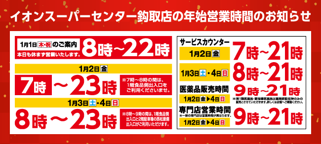 | イオン銀行 | 8:00~23:00 | 8:00~23:00 | 8:00~23:00 |