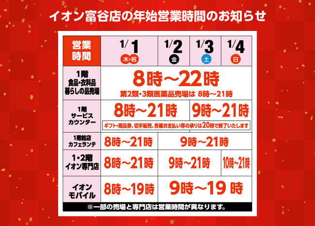 | WAONステーション | 8:00〜22:00 | 8:00〜22:00 | 8:00〜22:00 |