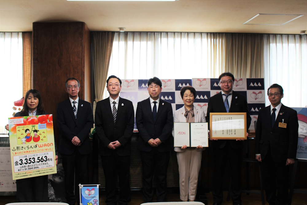 山形さくらんぼWAON寄付金贈呈式を行いました。