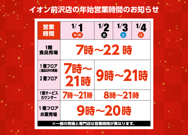 ※一部の売場および専門店は営業時間が異なります。