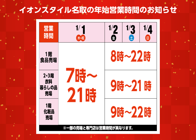 | WAONステーション | 8:00〜22:00 | 8:00〜22:00 | 8:00〜22:00 |