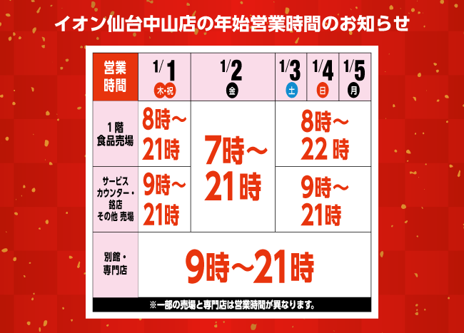 | WAONステーション | 8:00〜22:00 | 8:00〜22:00 | 8:00〜22:00 |