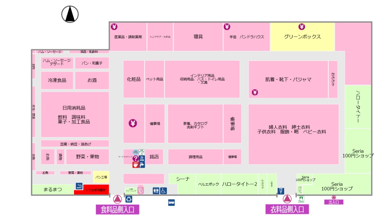 | seria | 100円ショップ | 9:30〜21:00 | 1F | 0176-27-6629 |