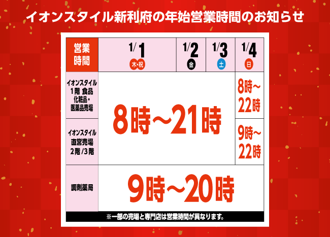| イオン銀行 | 10:00〜21:00 | 10:00〜21:00 | 10:00〜21:00 |