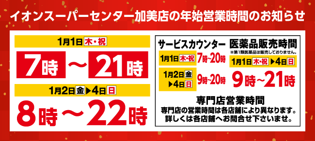 | イオン銀行 | 8:00~22:00 | 8:00~22:00 | 8:00~22:00 |