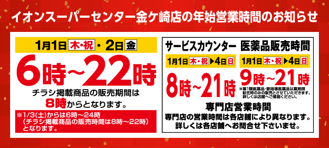 | イオン銀行 | 6:00~24:00 | 6:00~24:00 | 6:00~24:00 |